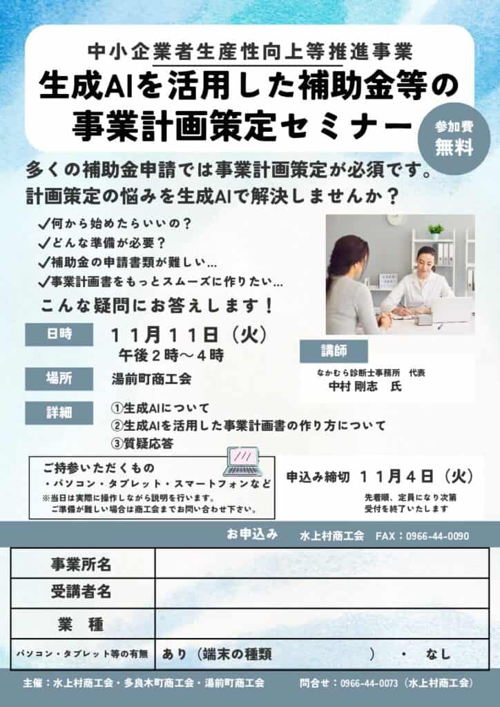 生成AIを活用した補助金等の事業計画策定セミナーのお知らせ【11/11(火)】