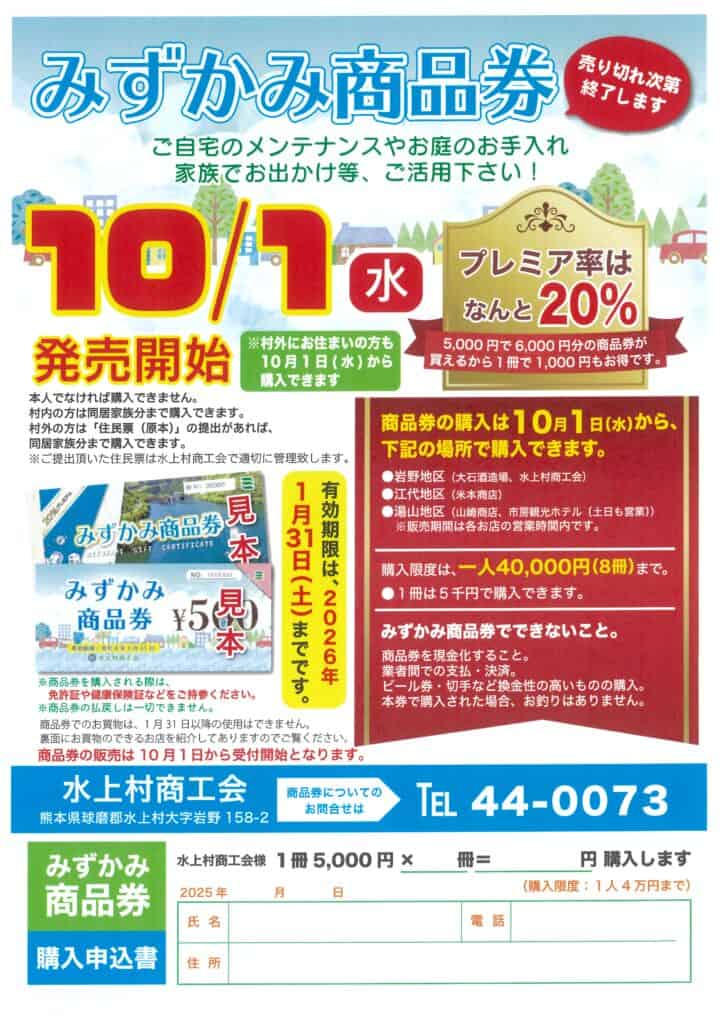 令和7年10月1日(水)よりプレミアム率20%の「みずかみ商品券」を販売いたします。